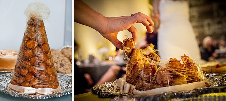 (The amazing dessert you will see below is called “croquembouche” and it’s a French wedding tradition. Spun sugar and cream puffs – oh my! So beyond delicious!)