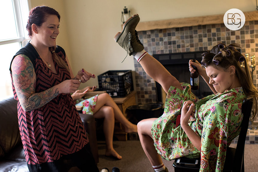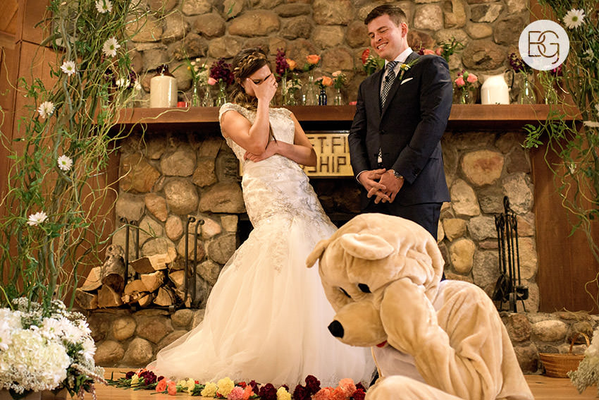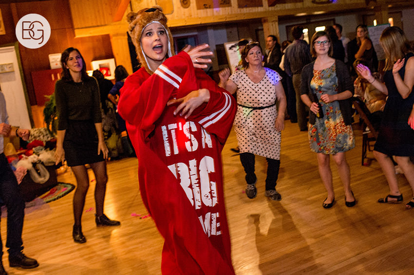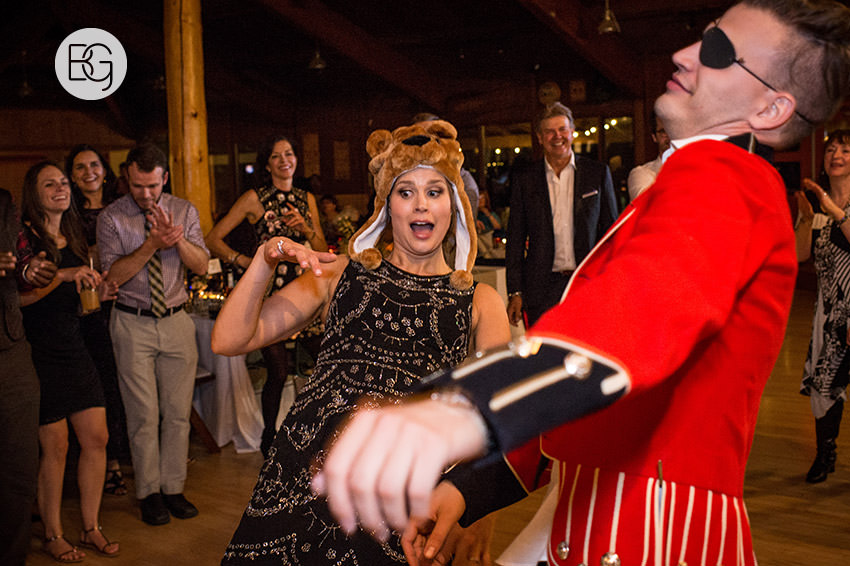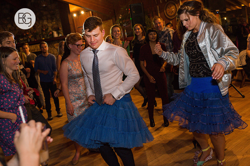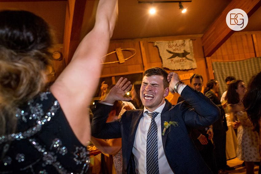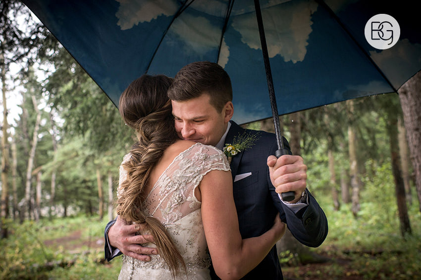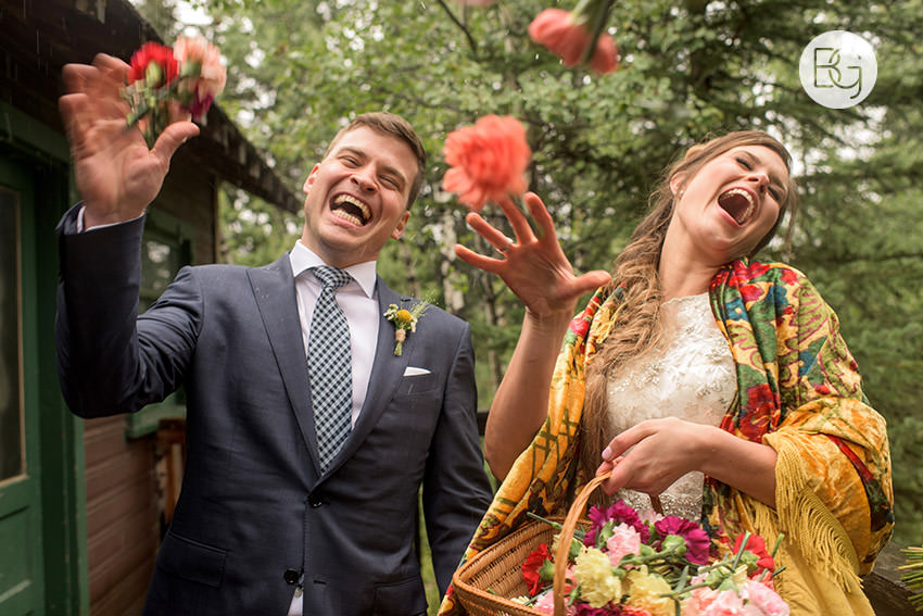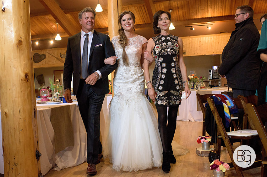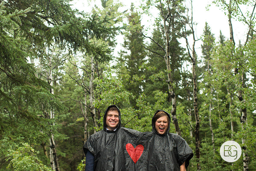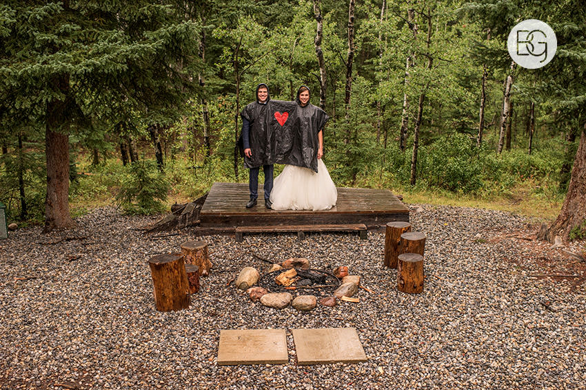 YMCA Camp Chief Hector, just outside of Canmore, Alberta, is a great wedding venue, even in the rain – the lodge/mess hall was the perfect setting for an awesome ceremony and hilarious party.