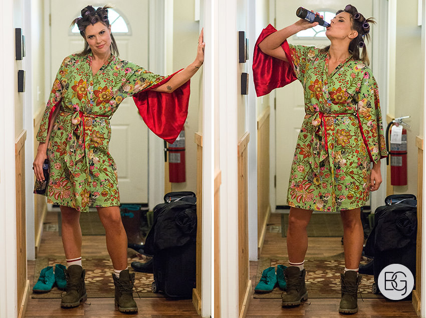 If anything, the party was even more fun, because it’s always more fun to dance and celebrate and be silly when a storm is raging outside. Clouds covered the pretty mountains, you couldn’t even see them, we were wrapped in a cloud of misty rain that just lessened enough for us to get a few soggy shots outside, and a first look.