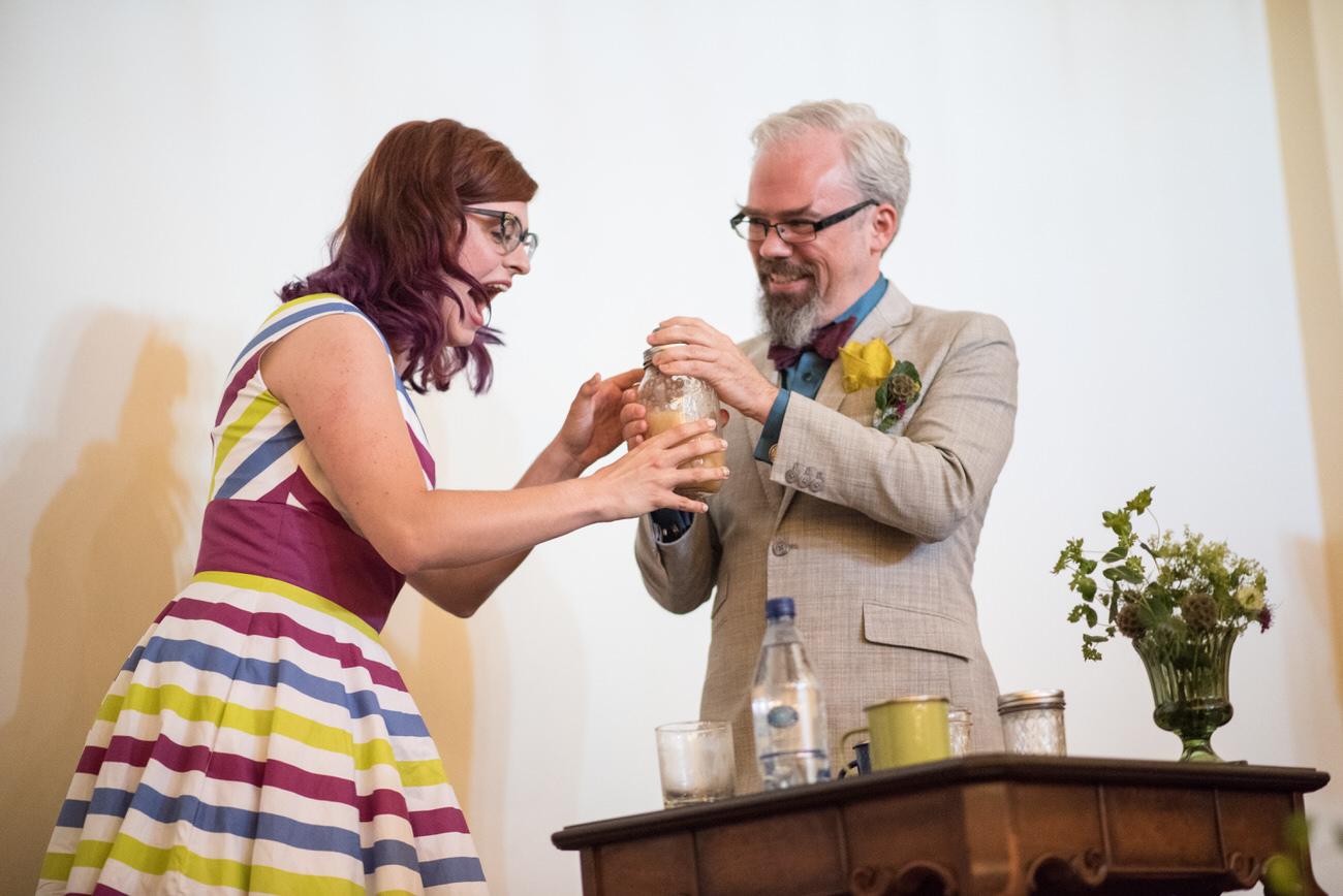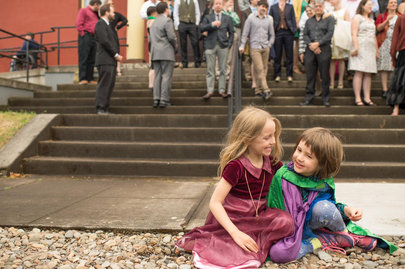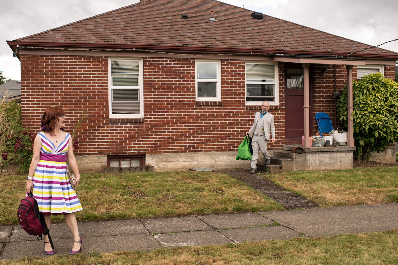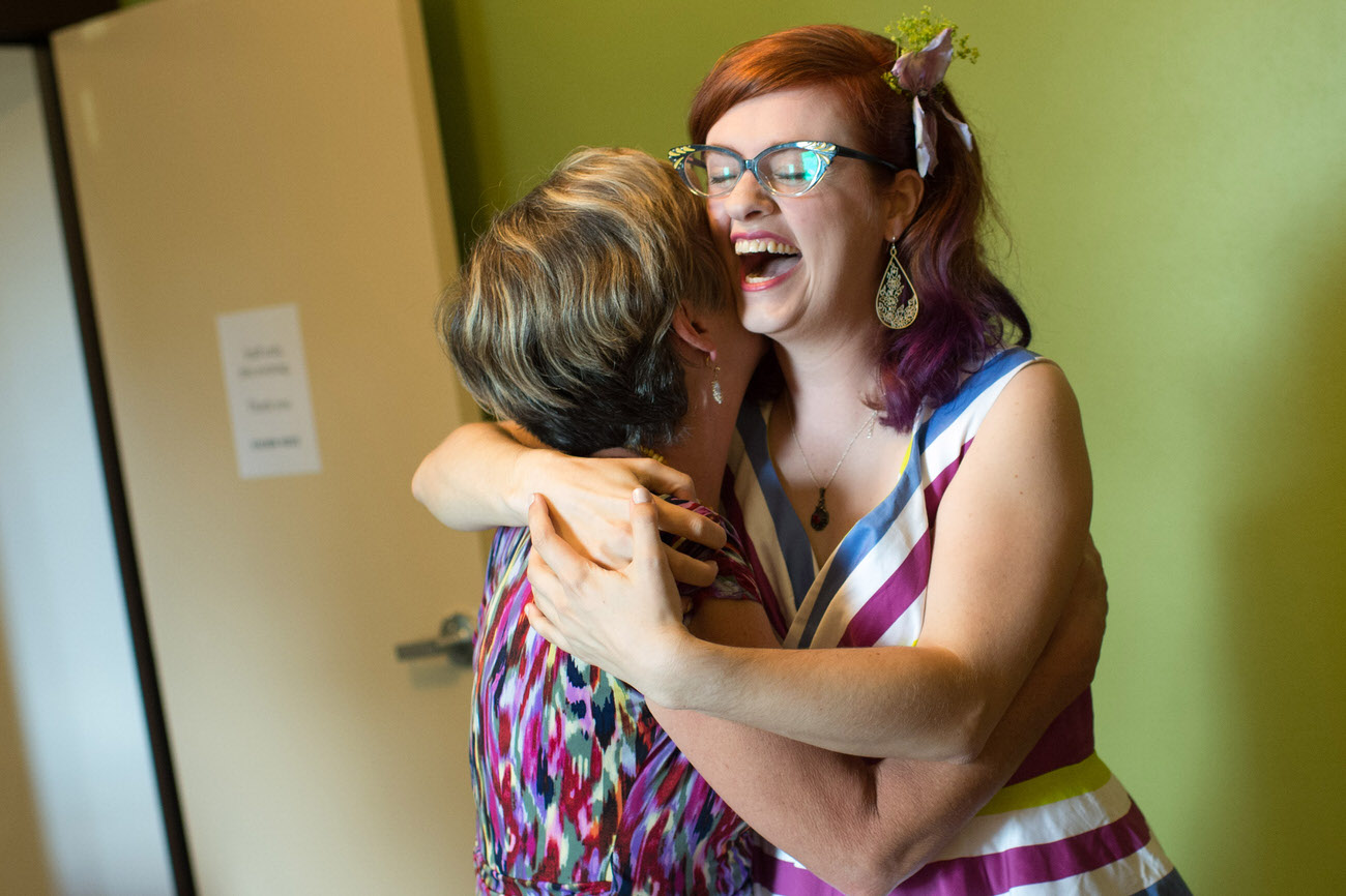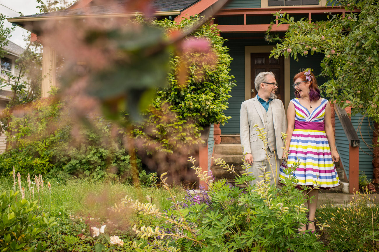 Instead, I have a very special wedding to share with y’all! Liene and Nathan’s wedding in Portland, OR is one of my faves. Not only did we do a day after session at the gorgeous Bridal Veil Falls, these two are just so cool and had the most perfect, sweet and personality-filled wedding ever! Liene’s dress was so fun – it even had twinkly lights inside the skirt! They got ready together (which I love and highly recommend!) and after, we wandered around their cute little Portland neighborhood, the Alberta Arts District, on the way to the ceremony, which was a 10 minute walk from their place. So chill! We stopped along the way for a coffee, and they wrote their vows and speech in their favorite coffee shop where they’re regulars. Liene and Nathan’s wedding is proof that you can do things your own way, and have the most memorable, fun-filled day ever – the smiles in these photos really say it all!