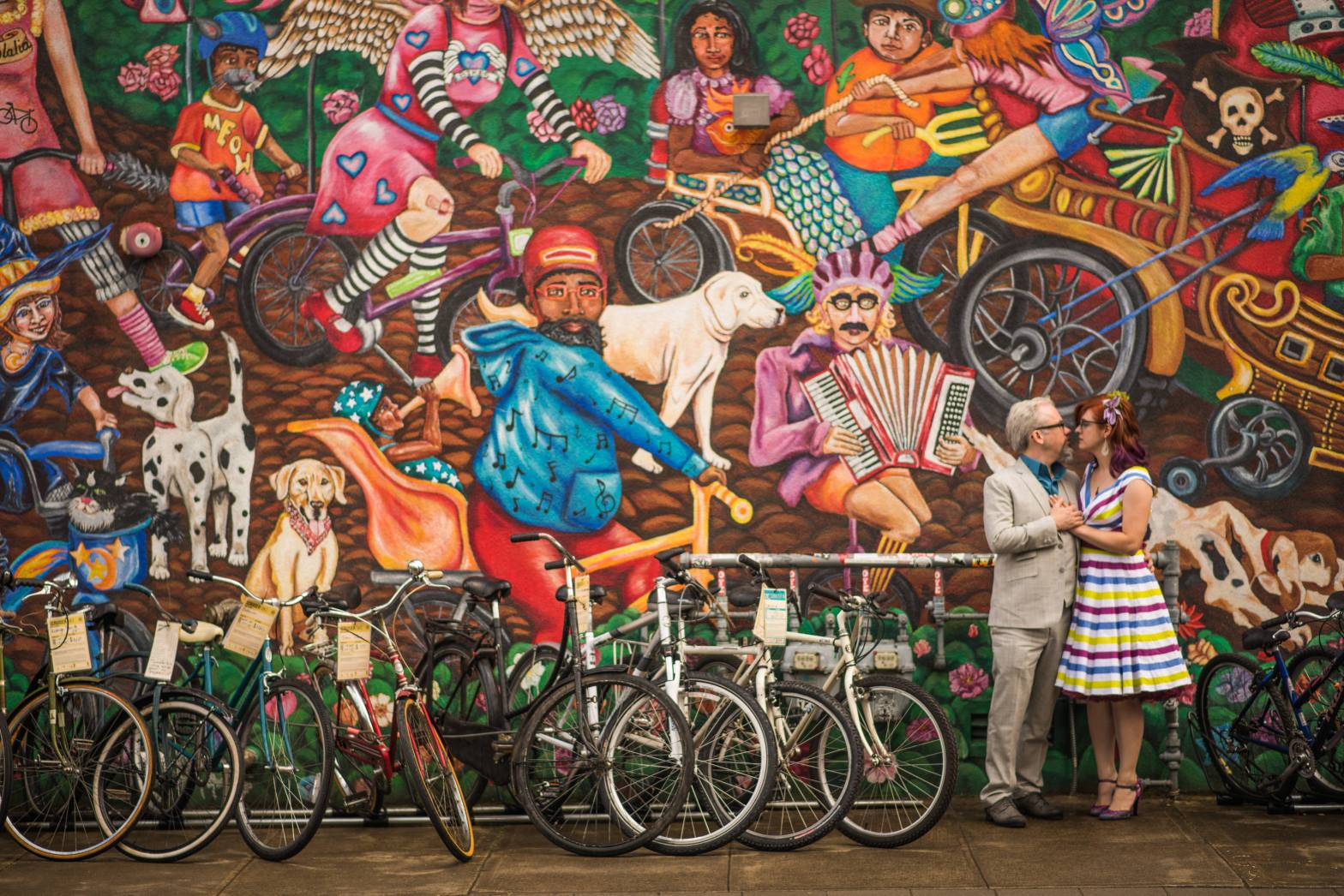 Instead, I have a very special wedding to share with y’all! Liene and Nathan’s wedding in Portland, OR is one of my faves. Not only did we do a day after session at the gorgeous Bridal Veil Falls, these two are just so cool and had the most perfect, sweet and personality-filled wedding ever! Liene’s dress was so fun – it even had twinkly lights inside the skirt! They got ready together (which I love and highly recommend!) and after, we wandered around their cute little Portland neighborhood, the Alberta Arts District, on the way to the ceremony, which was a 10 minute walk from their place. So chill! We stopped along the way for a coffee, and they wrote their vows and speech in their favorite coffee shop where they’re regulars. Liene and Nathan’s wedding is proof that you can do things your own way, and have the most memorable, fun-filled day ever – the smiles in these photos really say it all!