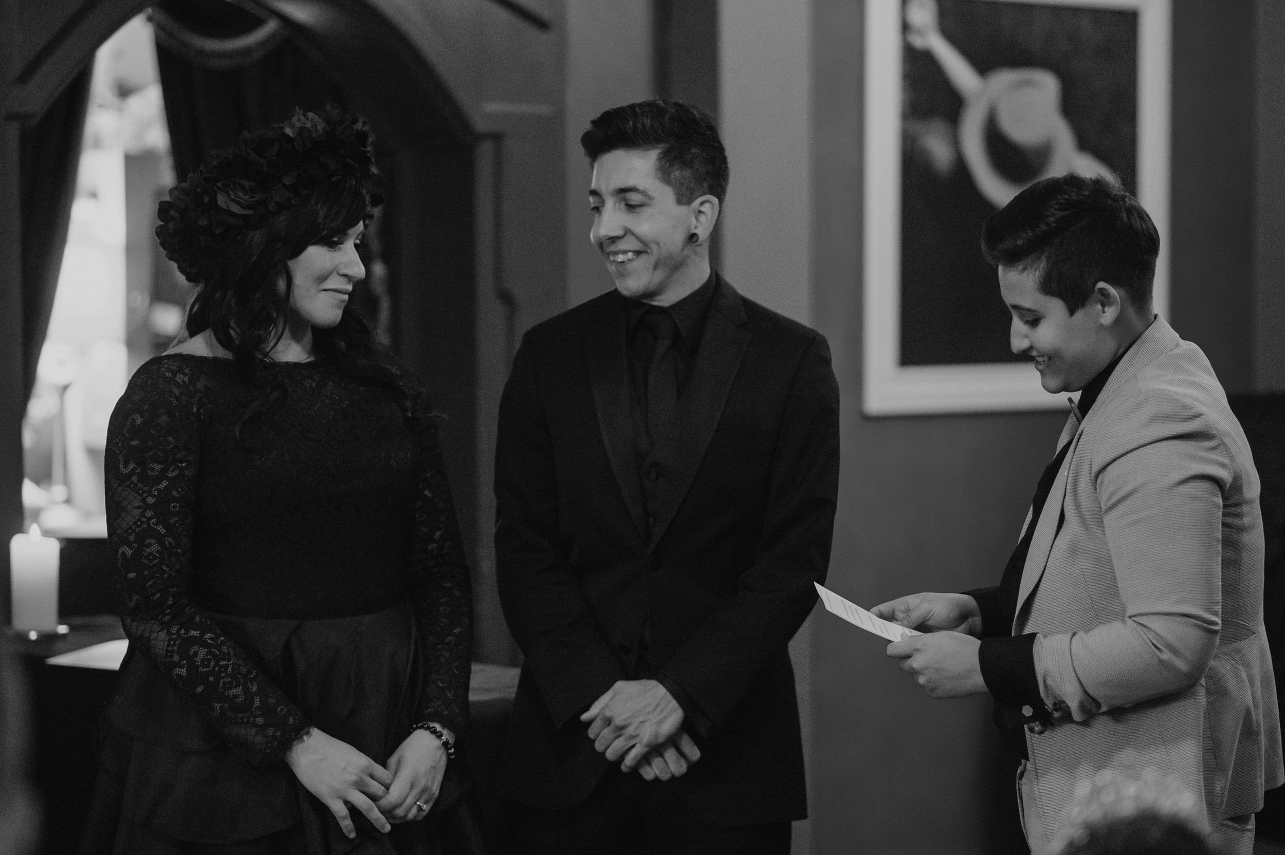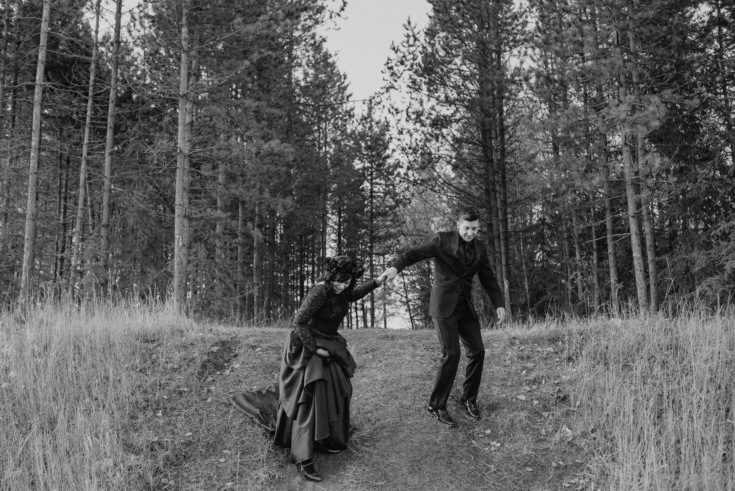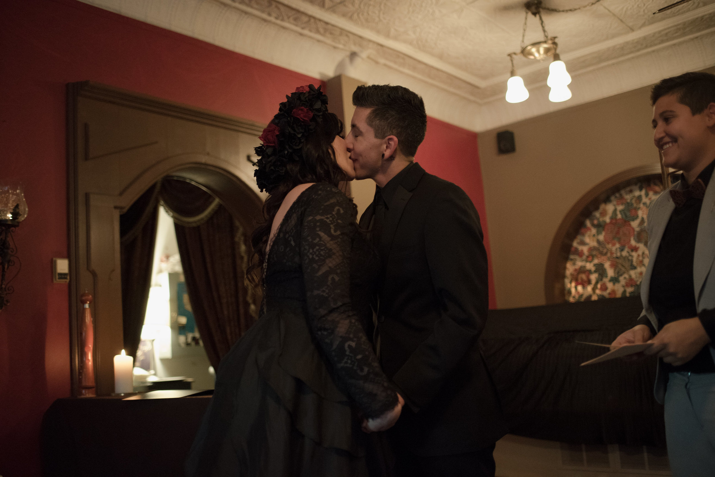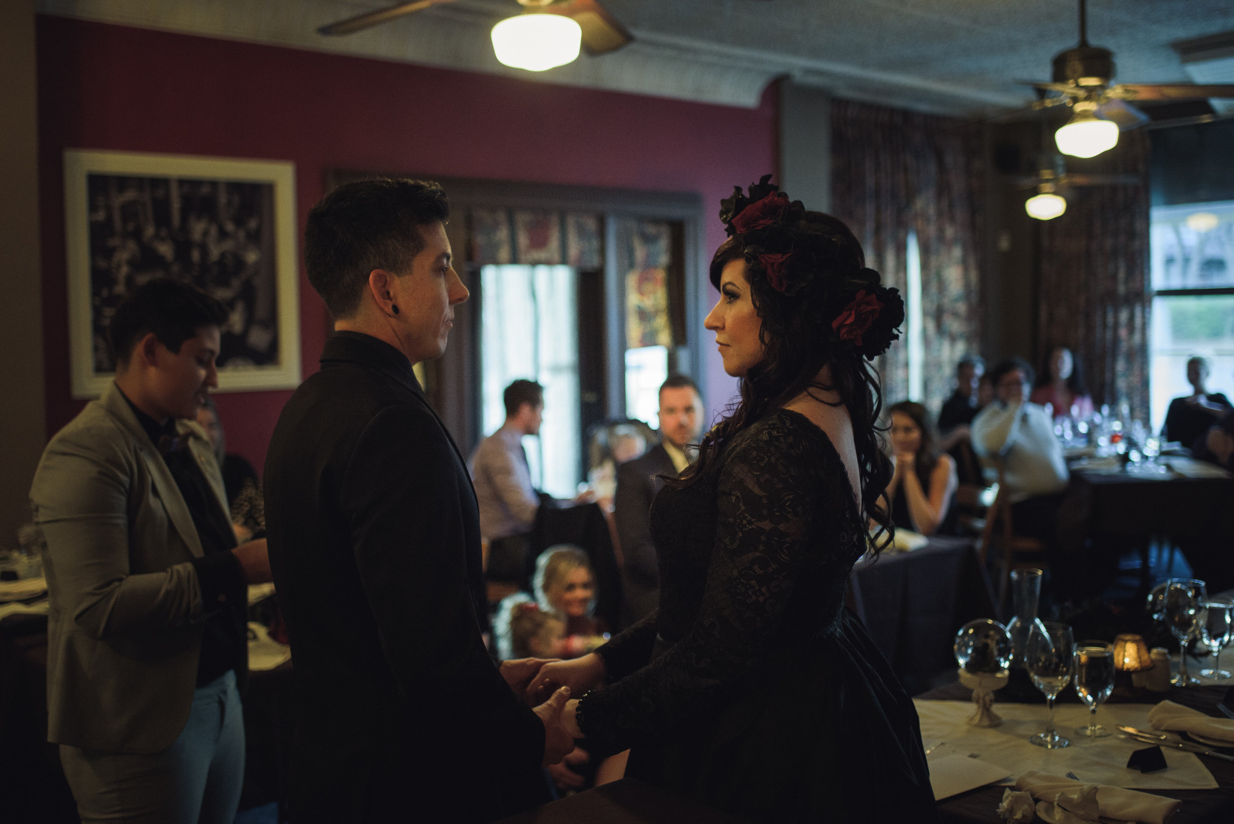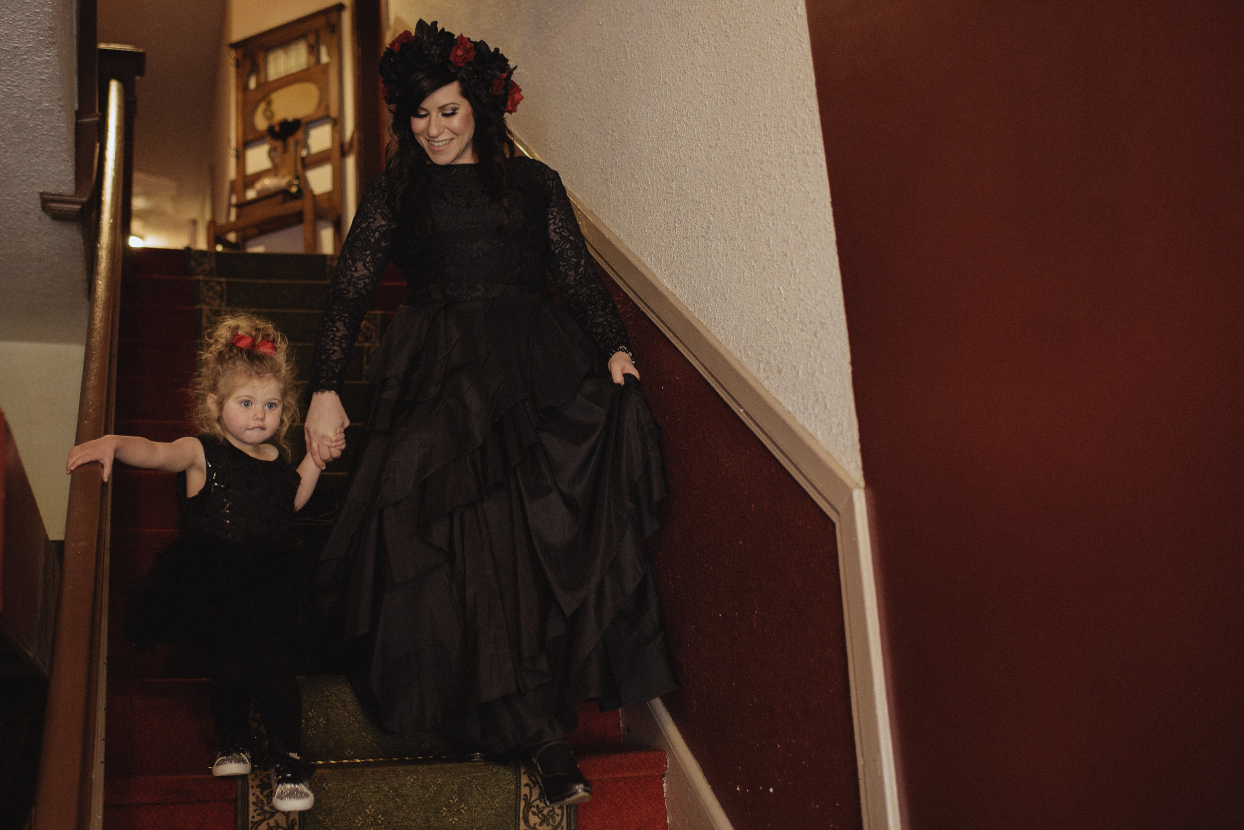 This soft-goth Friday the 13th daydream of a wedding (THAT OCCURRED IN A HAUNTED HOTEL!) is over a year old now, and I still reminisce about how seriously great it was, down to the very last detail. I admired Terje and Janelle from afar on Instagram before they contacted me about their wedding, and it was neat to get to know them better real-life style. There’s loads of detail shots below from their spooky venue – The Gibbard Block in Highlands, a supposed haunted historical building which has now been torn down for renovation…BECAUSE OF TOO MANY GHOSTS!!!! Not really, but maybe? All I know is that I’m glad I got to photograph such a cool wedding there before its’ big makeover.