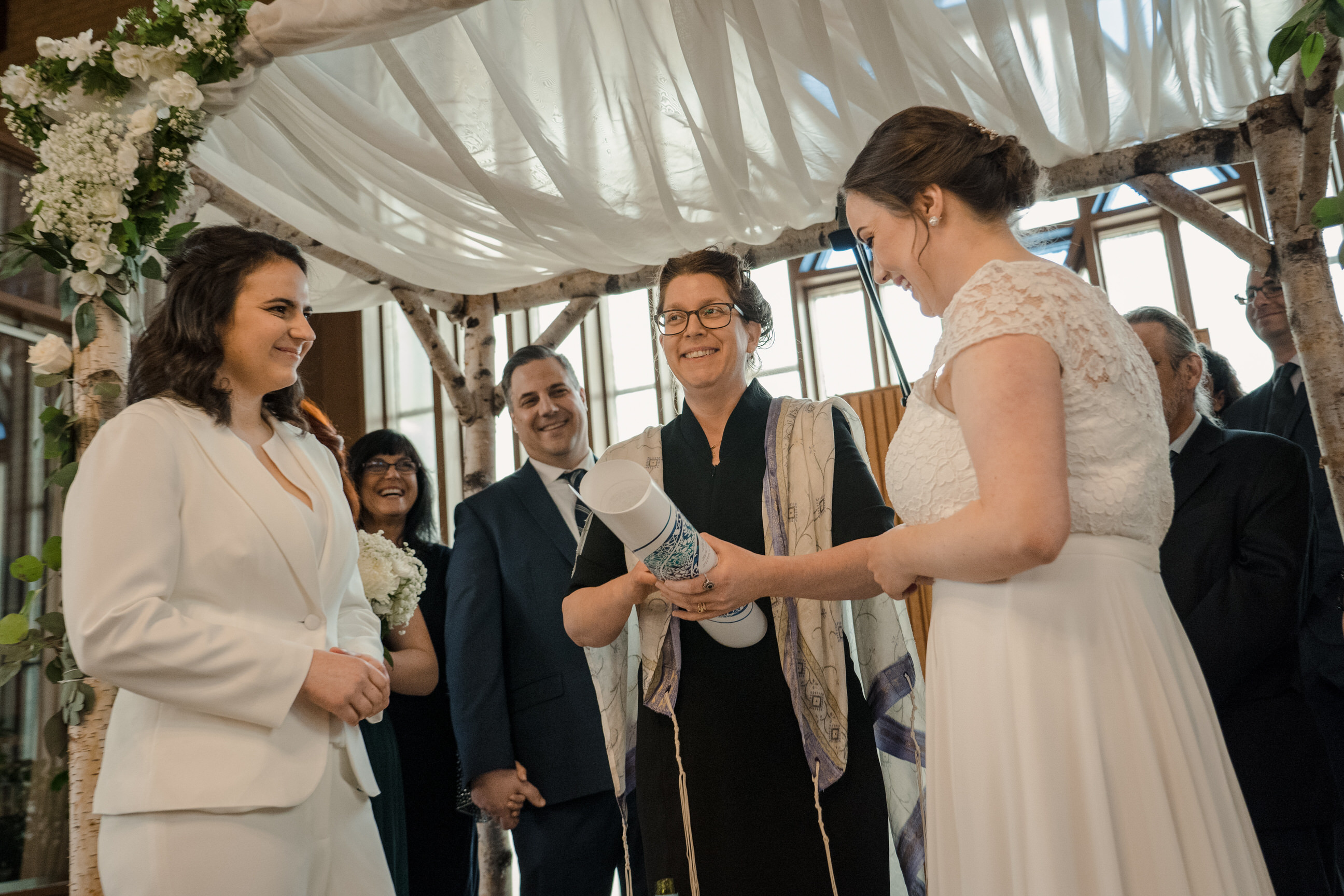 Today I’m sharing Amy and Jenna’s gorgeous spring wedding, which was held at Temple Beth Ora, followed by a brunch celebration at Sicilian Pasta Kitchen in downtown Edmonton. It was a day full of huge emotional hugs, adorable giggling kids, and so much love. I’m so happy I got to experience it, and meet Amy, Jenna and their awesome families and friends.