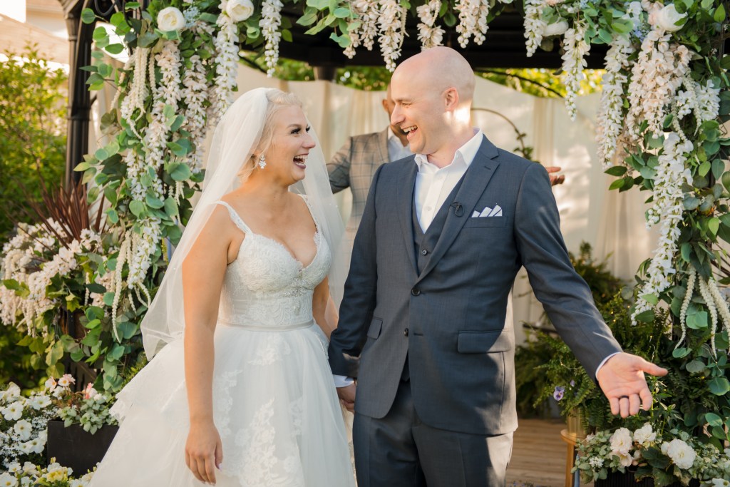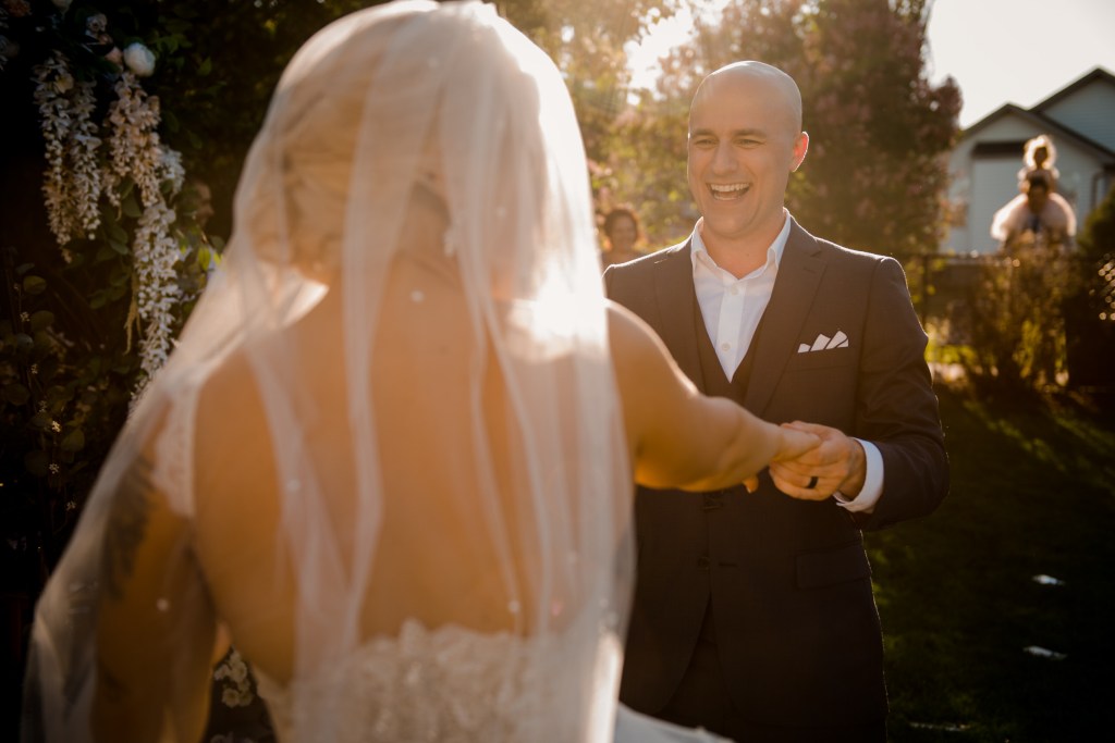 I usually pick a fave detail or moment, but as you’re about to see, there are a lot of incredible moments in this day – a romanticAF first look, so many tears of joy, dancing grannies, amazing bridesmaid dresses, an incredible backyard gazebo, and all those beaming happy faces – even from the guests who, due to social distancing guidelines at the time, watched and enjoyed the festivities from over the fence!