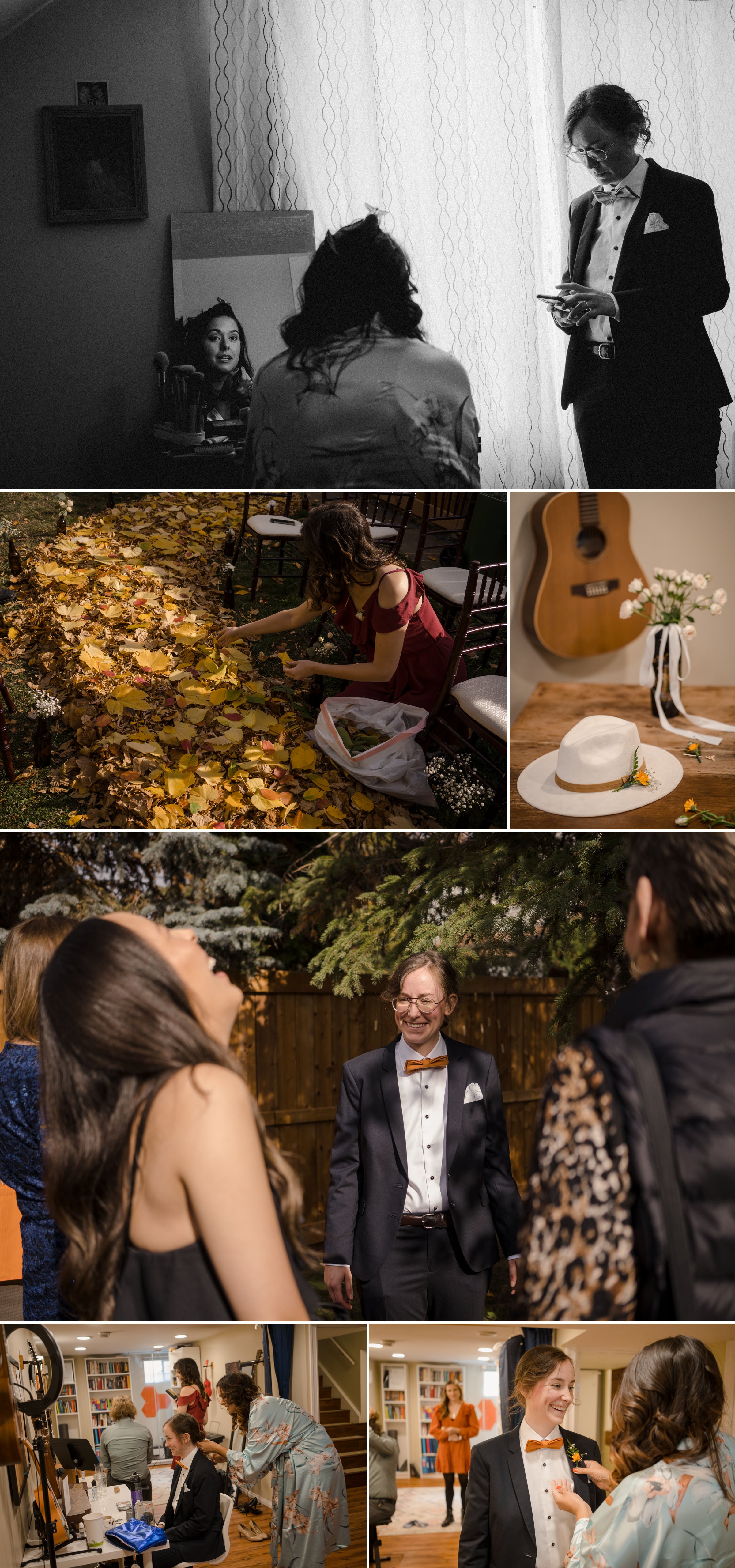 Carrie Ann and Pamela had to reschedule their big day several times due to Covid lockdowns and venue closures. They set a fall date for a backyard wedding once all their friends were vaxxed. When I arrived, all of their special people were already present, lovingly transforming the backyard into the perfect little wedding venue.