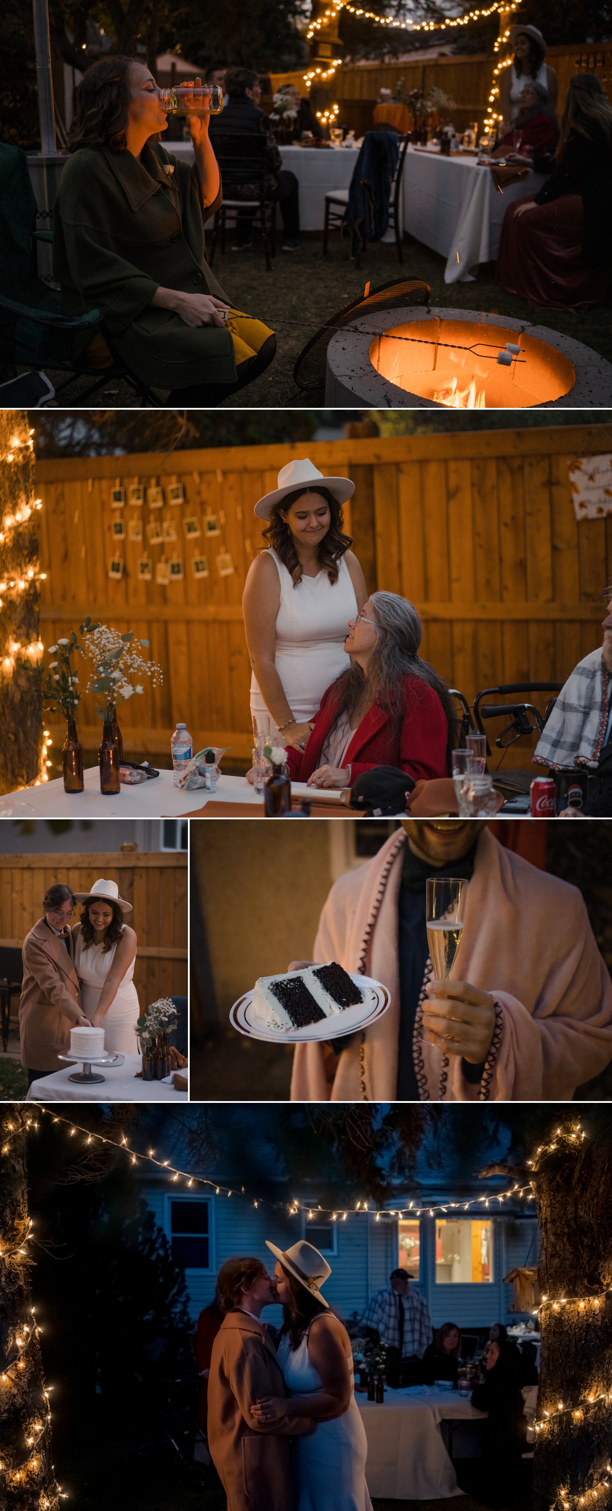 I’m not fancy. My idea of a fun night includes chilling around a campfire with my friends, drinking beers, grilling hotdogs and eating s’mores, and that was 100 per cent the vibe of Carrie Ann and Pamela’s reception.