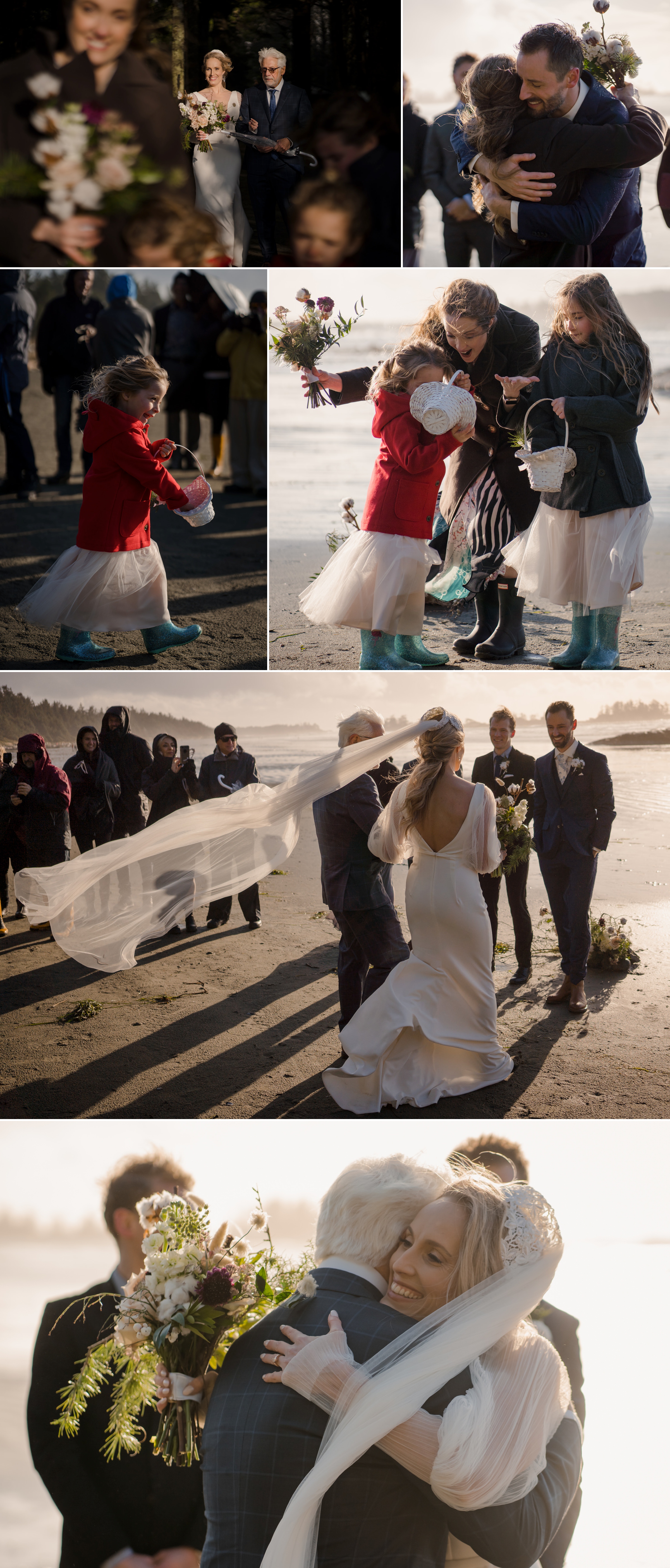 Weather in Tofino is unpredictable and changes in seconds – as soon as guests began to gather on the beach before the ceremony, a crazy squall blew in, blowing rain in every direction.