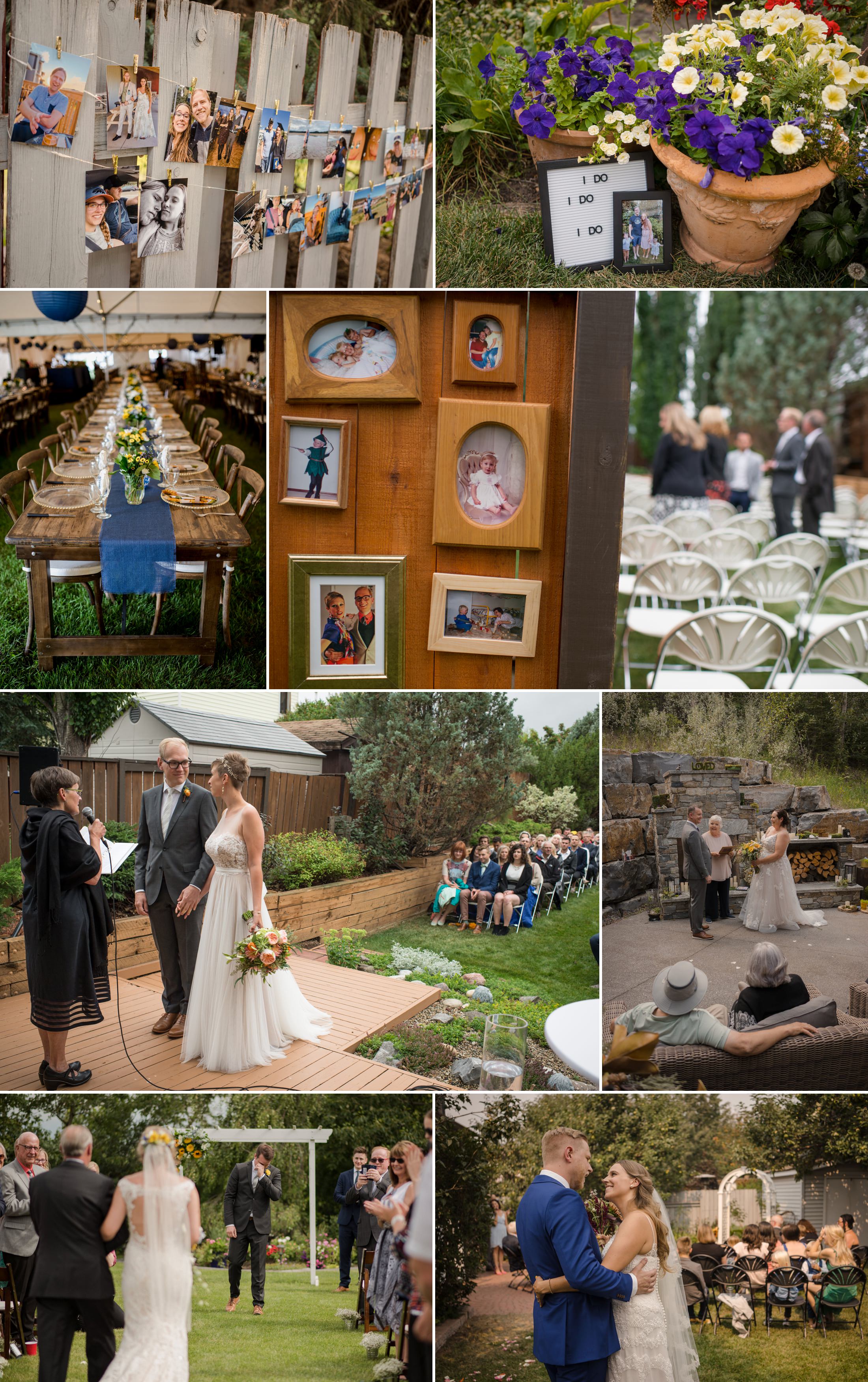 Decor is easy to find – you can rent everything you need, or if you’re ambitious, you can also start looking for things on kijiji or marketplace, or thrift shops. Thoughtful, personal touches like cherished photographs are always awesome, and perfectly suit the vibe of an intimate Edmonton backyard wedding.