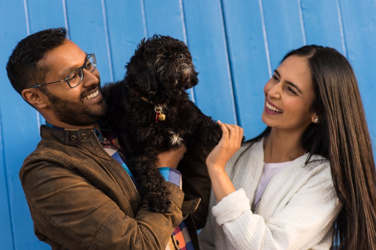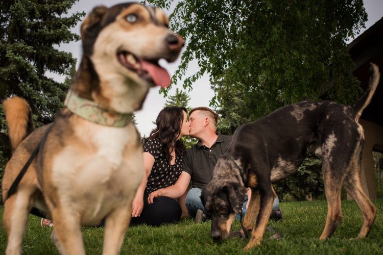 Another great reason to book an engagement photo session is to get photos with your doggo – especially if they won’t be at the wedding. At least half of my couples include their pets in their engagement session. Bonus – your pets give you something to do, something to concentrate on, so you’re a little less focused on the camera.