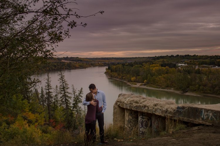 You might not get to choose the perfect time for outdoor photos on the wedding day, but engagement photos usually offer you the convenience of choosing a time of day when the light is best. In general, early morning or late afternoon is great. “Golden hour” is awesome – in Edmonton, that’s pretty late – sometimes as late as 9/10pm in June, 3:30/4pm in the winter months. If you can’t make these times work, don’t stress. A good photographer can get great photos of you any time.