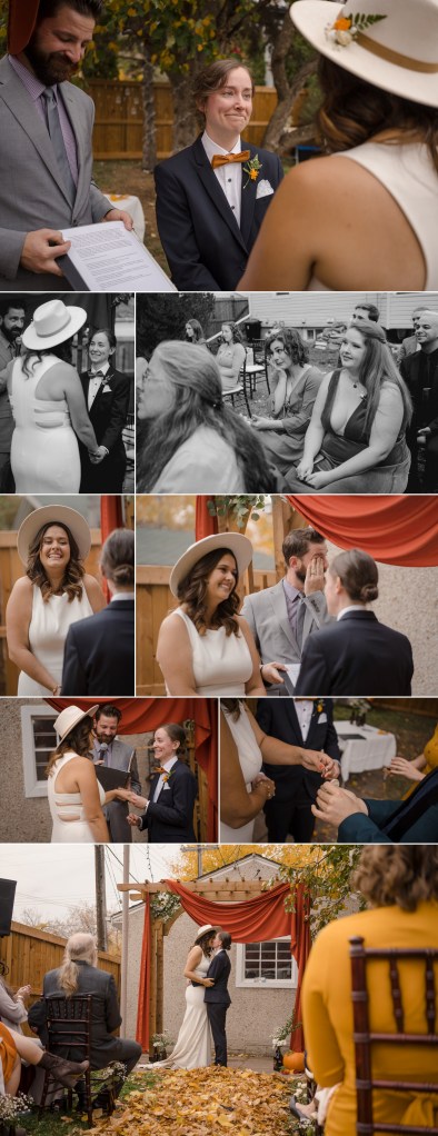 In Alberta, you can have a friend perform your ceremony by getting a temporary marriage commissioner certificate. They’re in high demand, and they take awhile to process, so if you really want a friend/family member to perform your ceremony, click here and find out more.