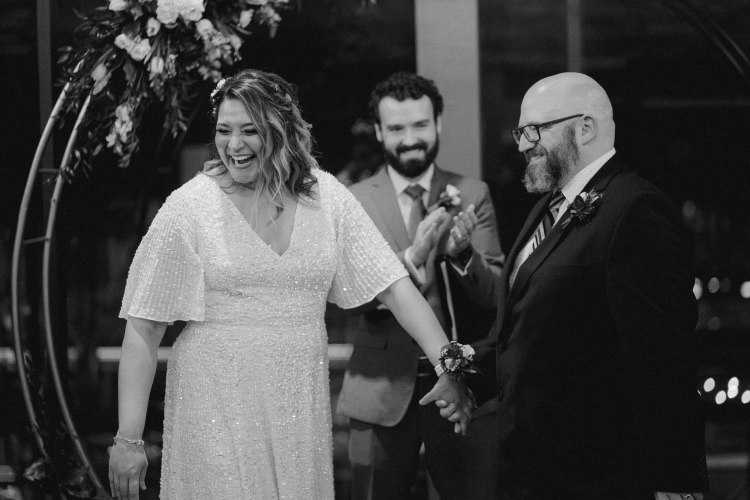 Our vows were perfect and special because they were about us, by us. The words we spoke come to mind instantly when I think of our big day. I thought I would be terrified being that emotionally vulnerable, speaking in front of all those people, but in that moment, it felt like we were alone, just me and my partner. Those feelings were just for us. I’m so happy I get to hold that memory, and that the folks witnessing our wedding know how much we love each other.